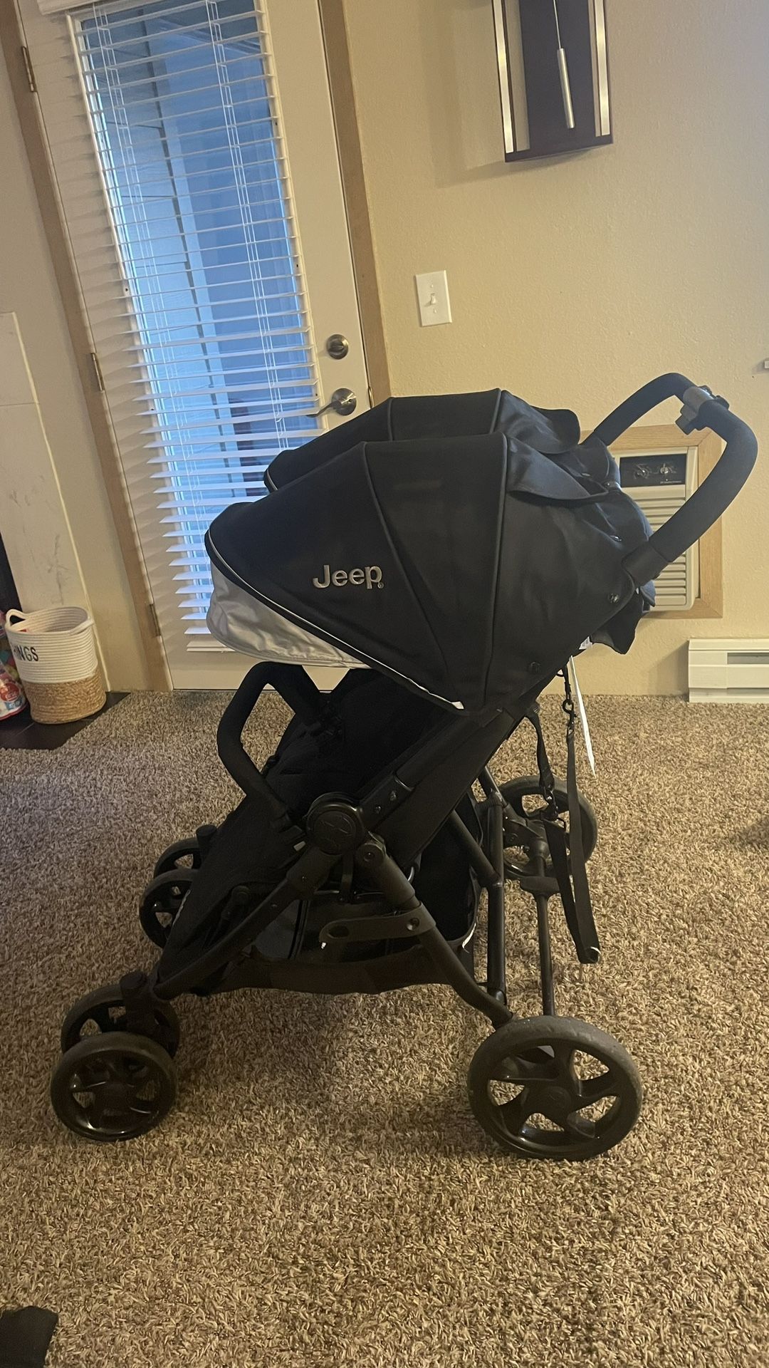 Like New 2024 Jeep Destination Ultralight Side x Side Double Stroller.