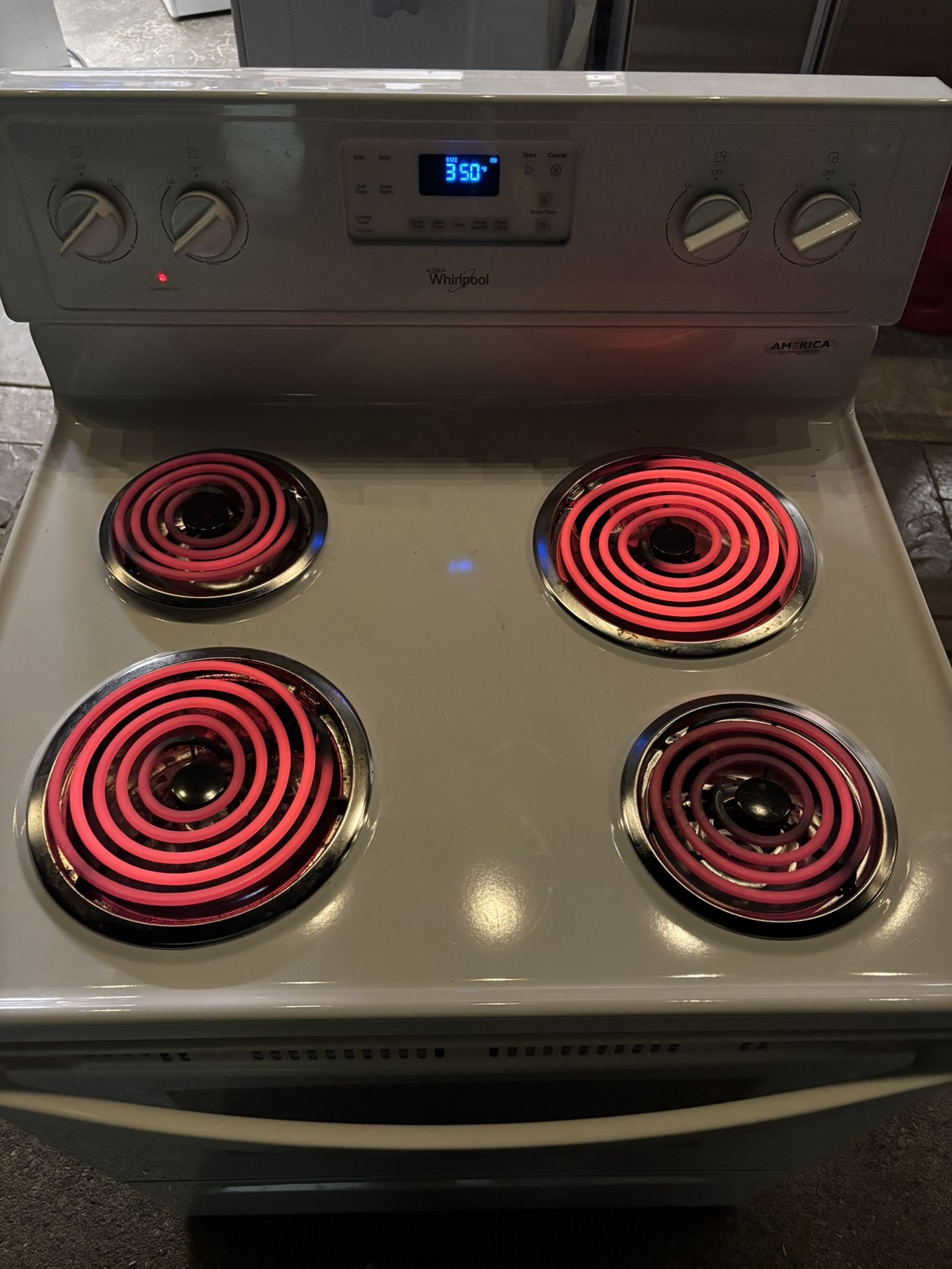 White whirlpool range only 2 years old. Oven works great and so does the cooking surface. Can test before purchasing. Can deliver locally for a small fee.