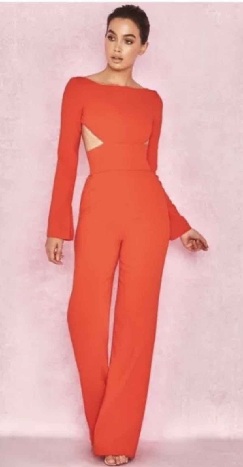 House of CB Cristanta dark orange backless jumpsuit size large NWT