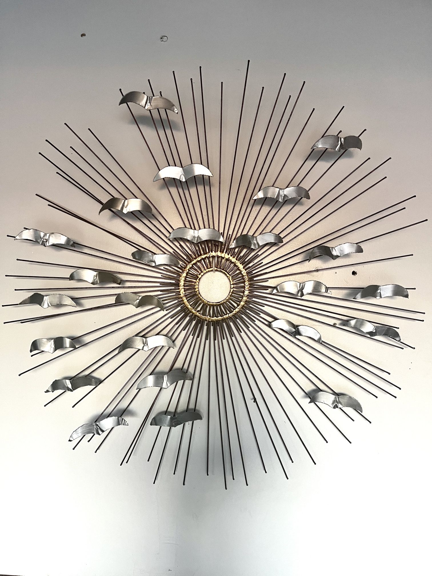 Vintage Rare 1960s Mid Century Sunburst And Birds Wall Ornament By Curtis Jere