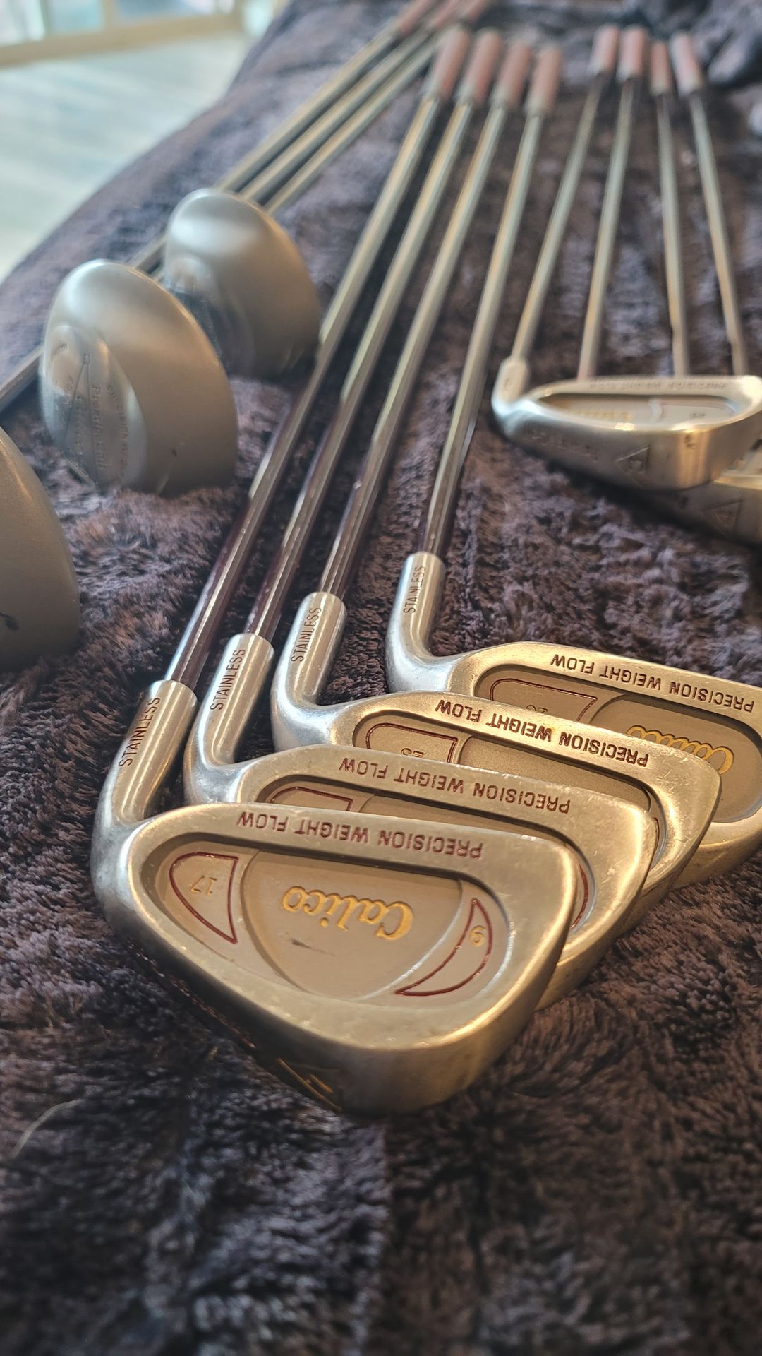 Full Set of Calico prestige clubs. Graphite Lady lite shafts. Comes with a brand new never used Costway golf bag. Grips, heads and Shafts are in excellent shape and ready for play. 15 golf balls included