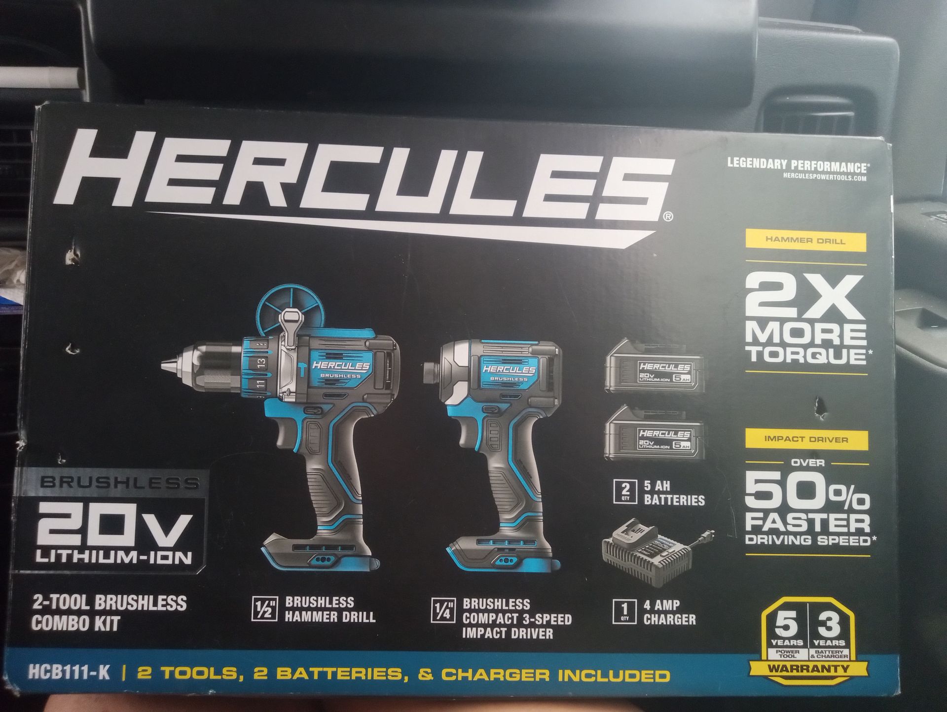 Hercules 20V Brushless Cordless Hammer Drill and Impact Driver 2-Tool Combo Kit with Battery