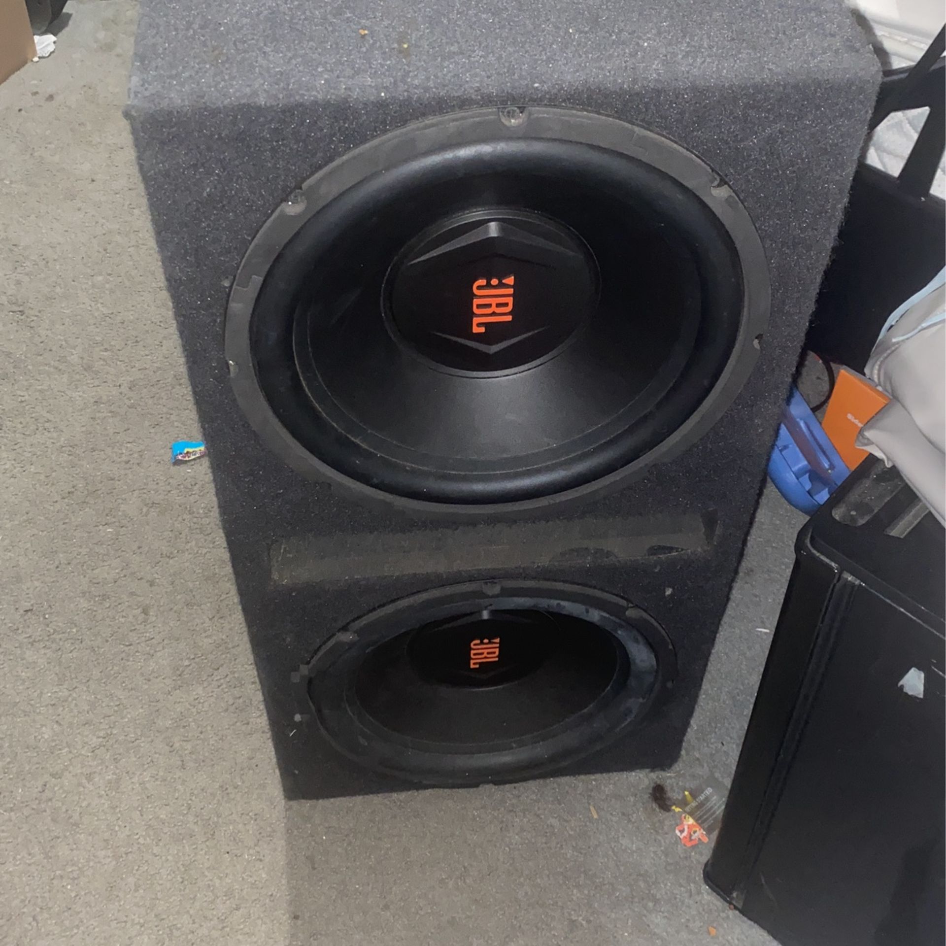 JBL Subwoofer 2 12” in box. Great Condition, got a new car and these are way too big. Shoot me an offer i am willing to negotiate or trade. (: