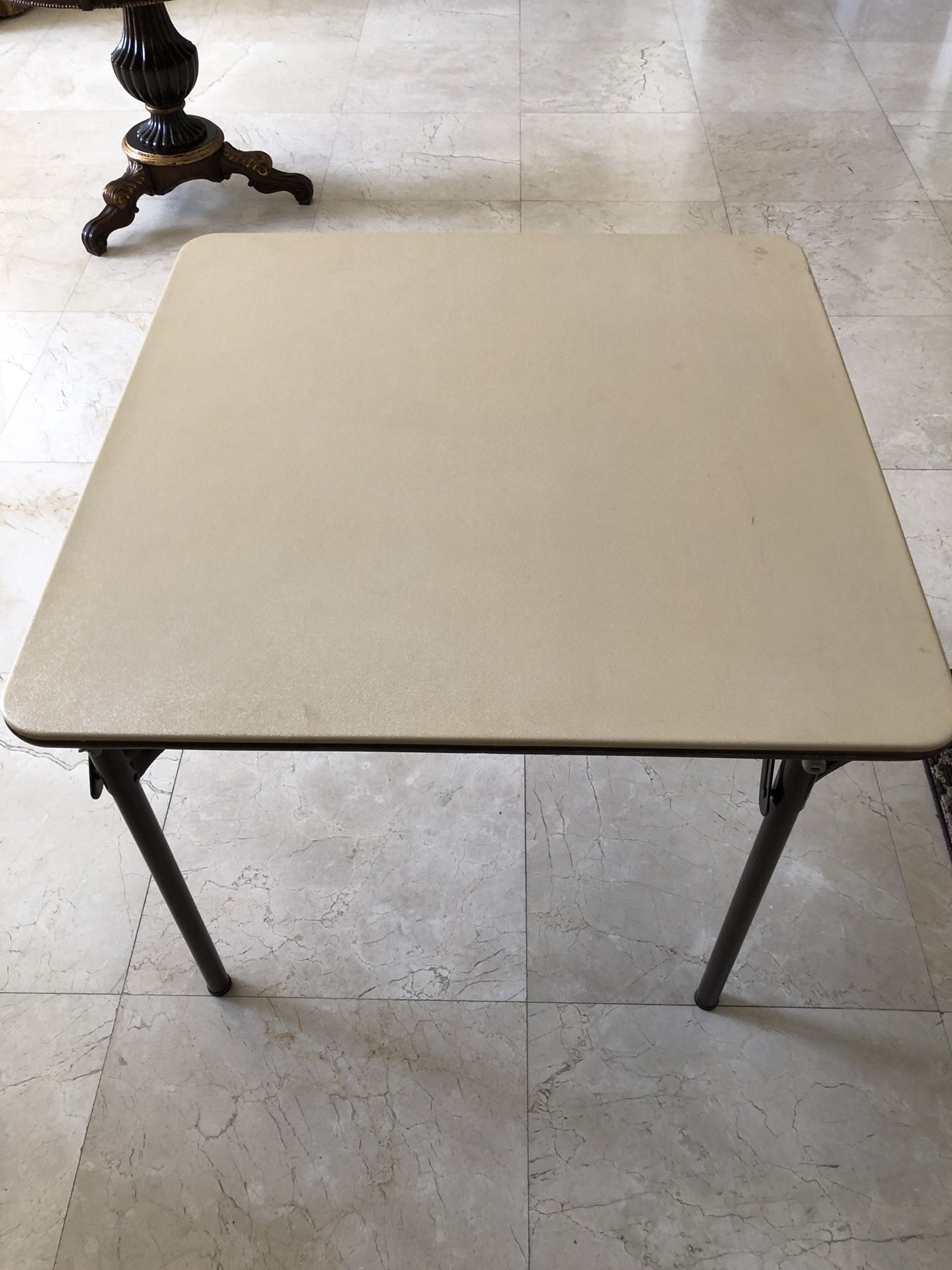 MITY-LITE SQUARE FOLDING TABLE 36 x 36 Sell online for $249.00 Standard Table Height Industrial Grade Heavy Duty NOT SOLD IN BIG BOX STORES 1 inch steel folding legs Top and bottom beige Folding legs are brown
