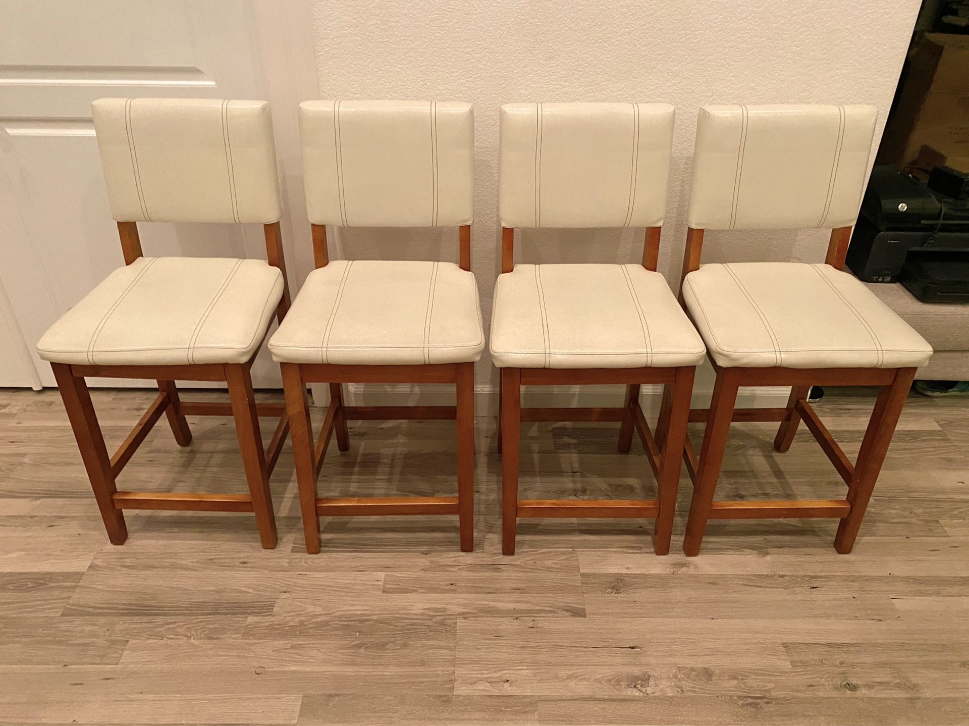 4pcs Beautiful Real Leather Bar Stools With Great Condition, Super Comfortable