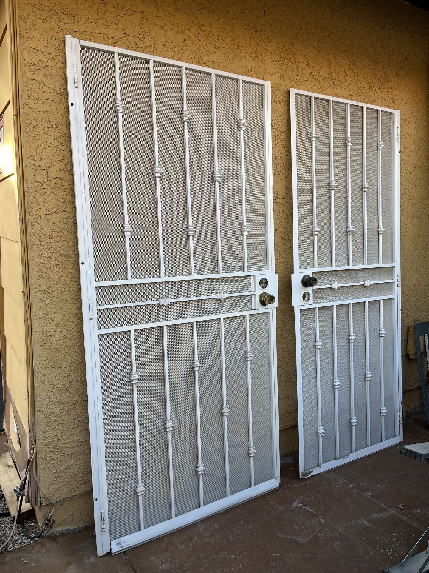 (2) White metal matching security doors. 32” X 80” and 36” X 80”. $80 each or $150 for set.