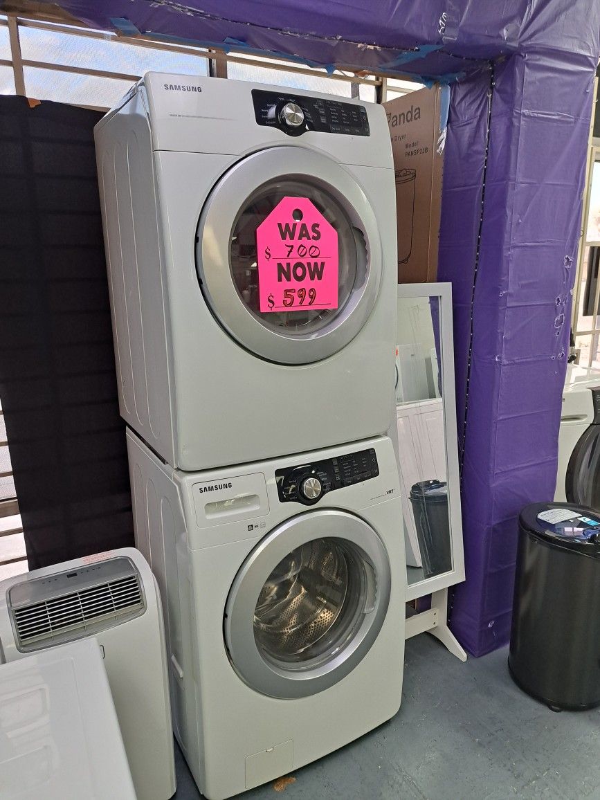 Samsung washer and dryer it can be stackable or side by side whichever your preference is, this set is pre-owned but in very good condition and comes with a 30-day guarantee. Free local delivery available under 10 miles and must be downstairs
