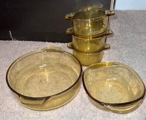 Vintage 5 piece Glass Round Bakeware