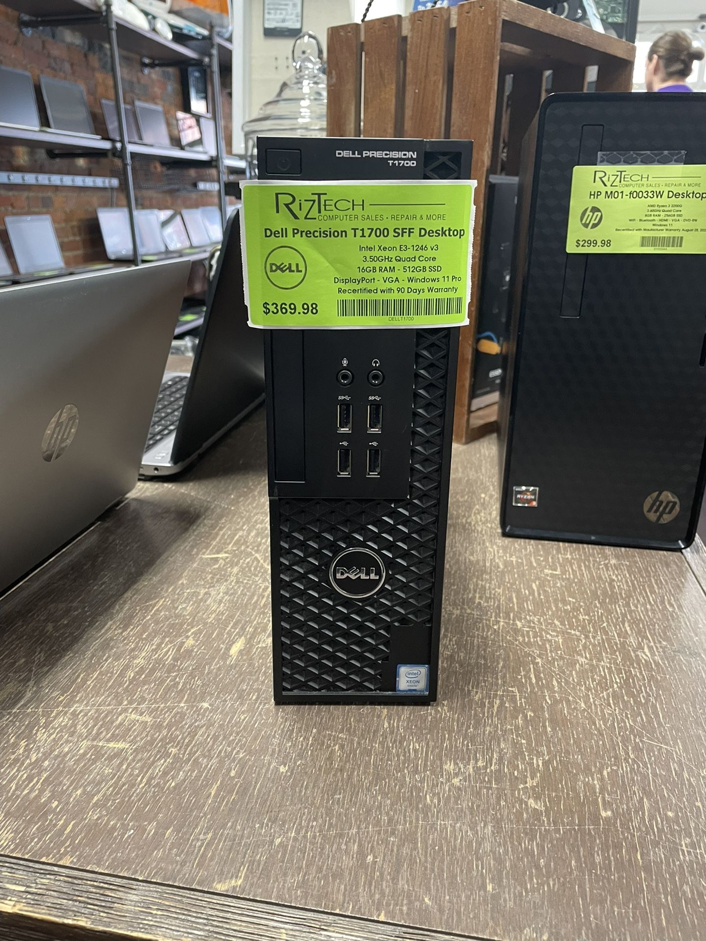 SHIPPING NOT AVAILABLE, Curbside or in store pick up available Dell Precision T1700 SFF Desktop Computer Intel Xeon E3-1246 v3 3.50GHz Quad Core 16GB RAM 512GB SSD DisplayPort VGA 10 USB ports See photos for more info and details $369.98 Financing available. Text 31005 to 22642 to apply. INCLUDES: - Professionally Recertified computer with 90 Day Warranty on parts and labor - Power Cord - FREE: We will transfer your files and photos from your old computer to any computer you buy at RizTech Available for pick up at our small local business RizTech in Medina, our shelves are FULL and we have hundreds of computers available plus tablets, iPads, iPhones, and a store full of top tech. If you haven’t heard of RizTech before, Google us. Our mission is to help our community save on tech and expect more. PLEASE READ 👇 Pick up only, we do not ship We are a small mom and pop shop, Google us! Hundreds of computers and a store full of new tech on shelves every day Monday - Friday 10-6 Saturday 11-4 Let me know if you want more pictures. Thanks. Call with questions. 330.952.1225 215 S. Court Street Medina Ohio