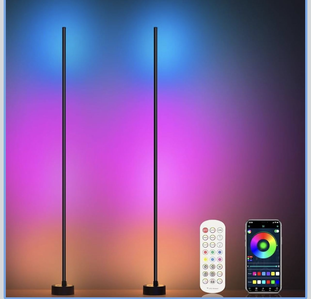 Corner Floor Lamp, 2 Pack LED Corner Lamp with App/Remote/Button Control, Smart RGB Floor Lamp with 16 Million DIY Colors & 68+ Scene, Music Sync for Living Room, Bedroom, Gaming Room
