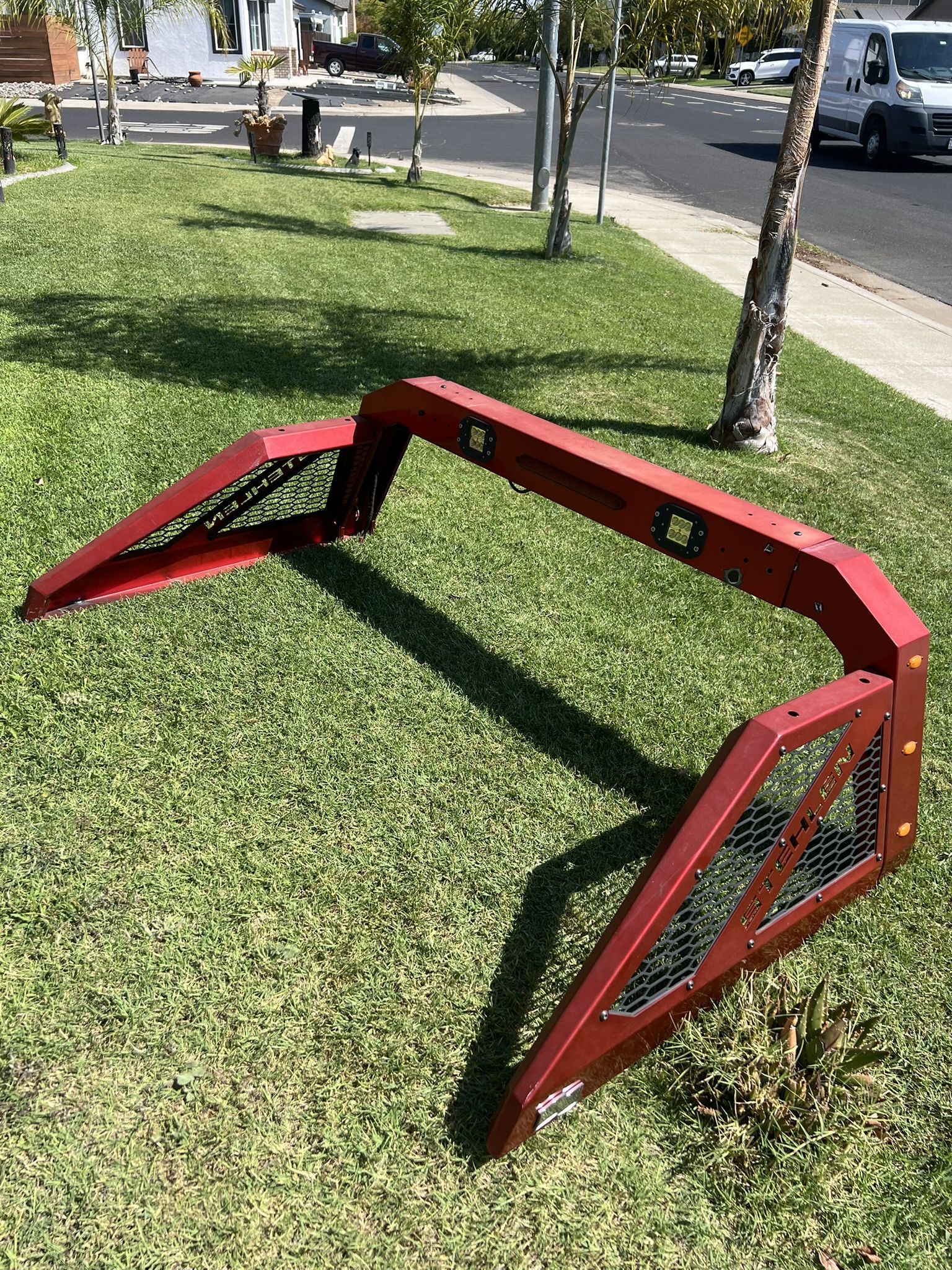 -Adjustable roll bar to any full size bed truck -2 LED back up lights -3 LED side markers on each side -Custom red paint