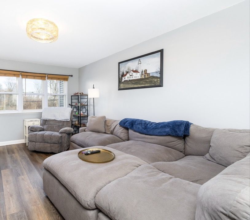Large sectional couch with USB chargers and two powered recliners, and separate reclining chair in great shape.