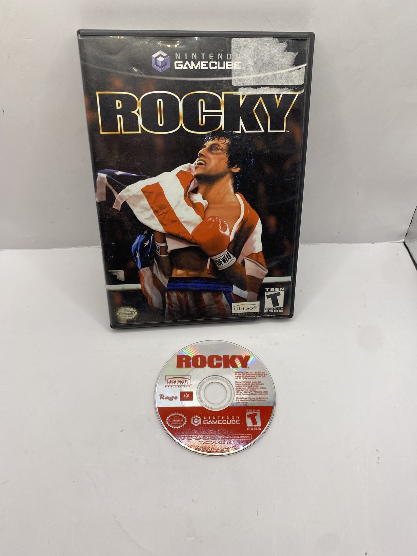 Rocky (Nintendo GameCube, 2002) Boxing CIB No Manual - Tested Rocky for the Nintendo GameCube is a sports video game with a sub-genre of boxing, based on the popular Rocky movie franchise. Published by Ubisoft in 2002, the game is rated T-Teen and includes multiplayer features. This CIB (complete in box) version does not come with a manual, but it has been tested and is in working condition. With a US region code and manufactured in the United States, this game offers players the opportunity to step into the ring and battle it out in the world of professional boxing.