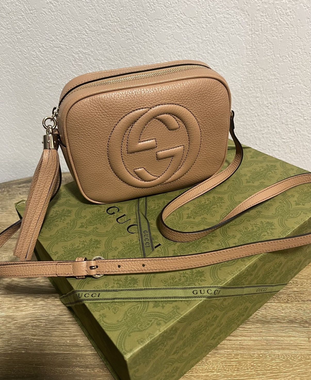GUCCI crossbody bag in original box with dust bag. No scratches of stains inside or outside, in like new condition. See all photos. I have attached a Certificate of authenticity to the listing.