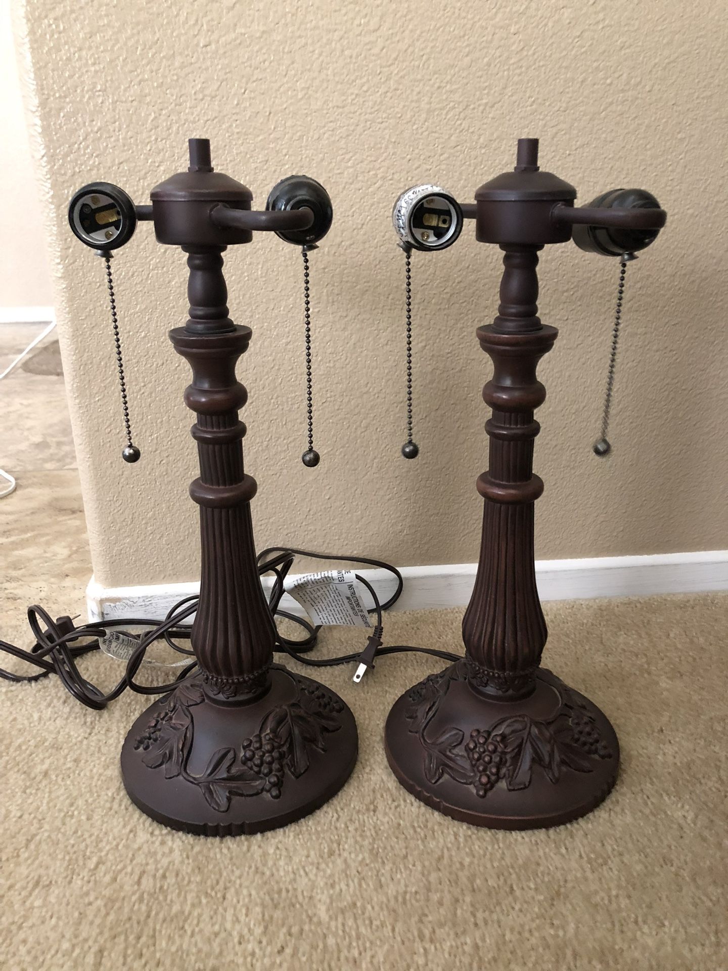 Tiffany lamps in excellent conditions, they are only missing the shades. The pull string doesn’t get stuck or anything. Asking $120 for both. Se habla español