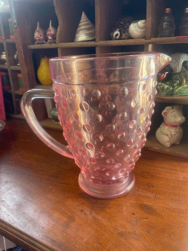 Vintage Pink Glass Pitcher Vase