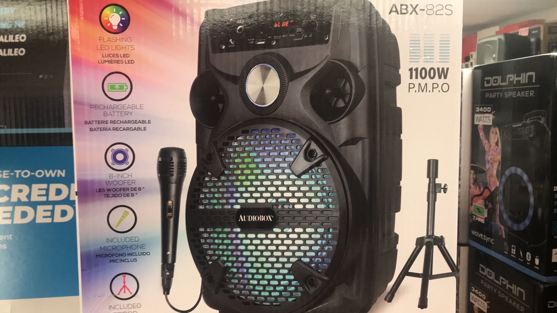 Bluetooth speaker Rechargeable Microphone included Stand Included