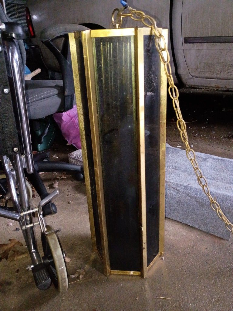 Very nice brass with Smokey glass chandelier