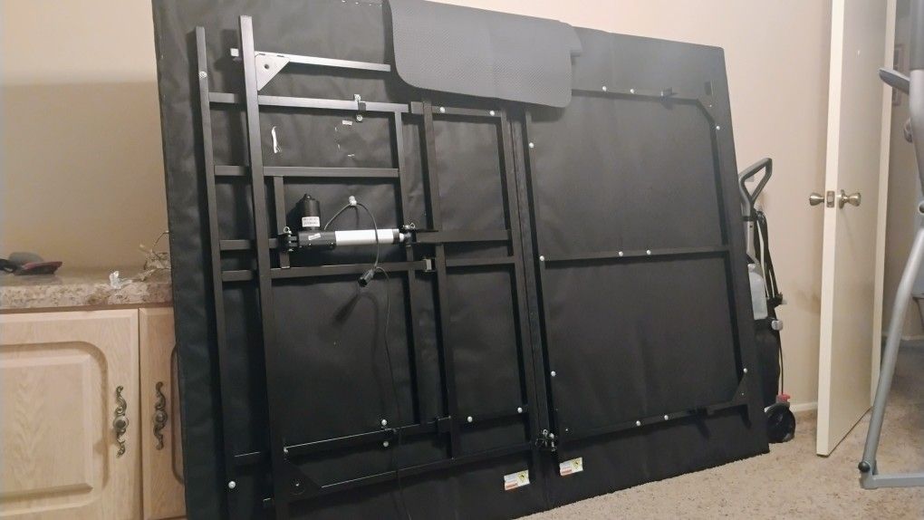 Very good condition Queen adjustable bed frame. Only the Head adjusts , the Head goes up or down . The feet doesn't adjust. Comes with 6 legs and remote control.