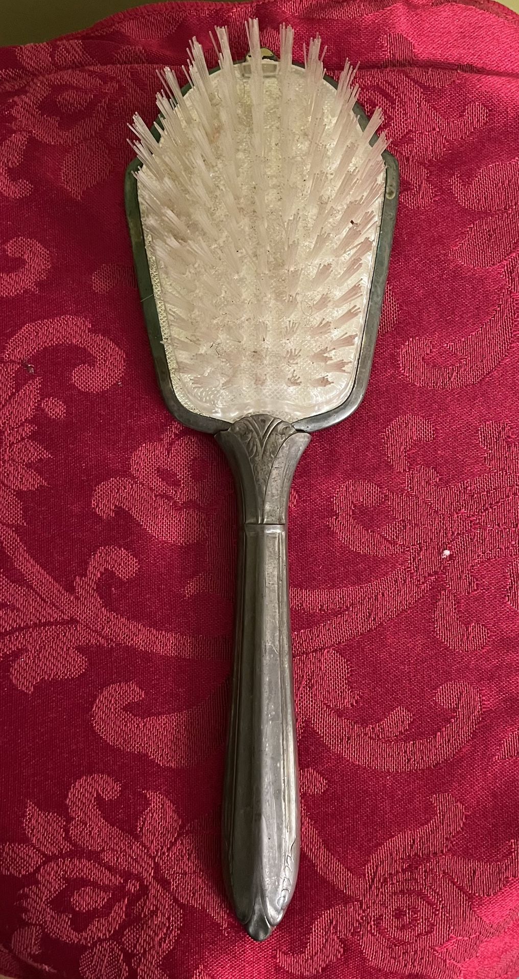 Antique Silver Plated Vanity Hairbrush with Nylon Bristles Detachable Head 8"