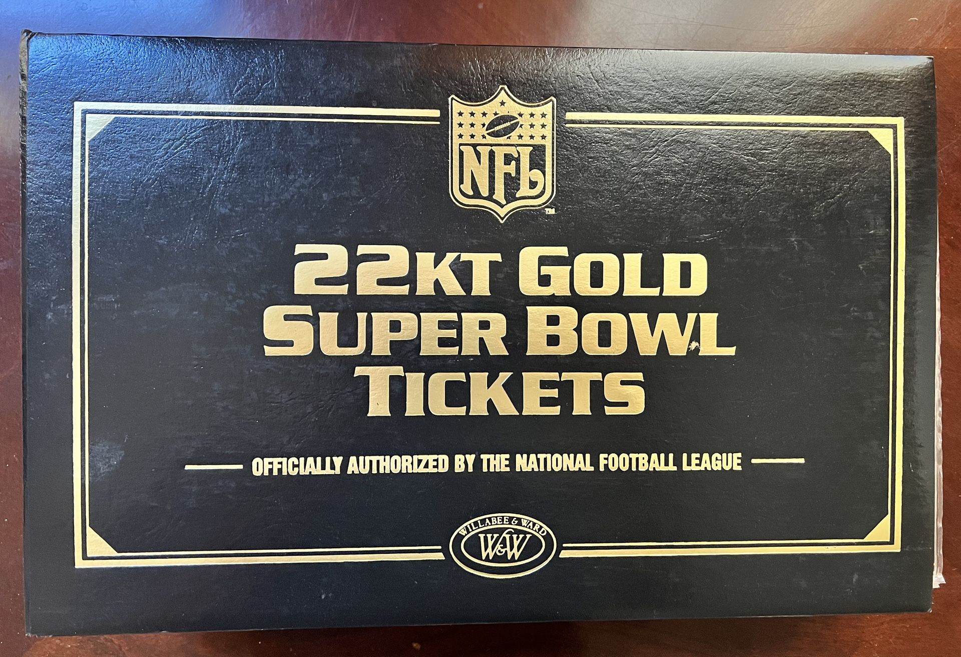 Pick your choice, $20 per ticket Super bowl I packers vs chiefs Super bowl II packers vs raiders Super bowl III jets vs colts Super bowl IV chiefs vs vikings Super bowl V colts vs cowboys Super bowl VI cowboys vs dolphins Super bowl VII dolphins vs redskins Super bowl IX steelers vs vikings Super bowl X steelers vs cowboys Super bowl XI raiders vs vikings Super bowl XII cowboys vs broncos Super bowl XIII steelers vs cowboys Super bowl XIV steelers vs rams Super bowl XV raiders vs eagles Super bowl XVII redskins vs dolphins Super bowl XVIII raiders vs redskins Super bowl XX bears vs patriots Super bowl XXI giants vs broncos Super bowl XXII redskins vs broncos Super bowl XXV giants vs bills Super bowl XXVI redskins vs bills Super bowl XXVII cowboys vs bills Super bowl XXVIII cowboys vs bills Super bowl XXX cowboys vs steelers Super bowl XXXI packers vs patriots Super bowl XXXII broncos vs packers Super bowl XXXIII broncos vs falcons Super bowl XXXIV rams vs titans Super bowl XXXV ravens vs giants Super bowl XXXVI patriots vs rams Super bowl XXXVII buccaneers vs raiders Super bowl XXXVIII patriots vs panthers