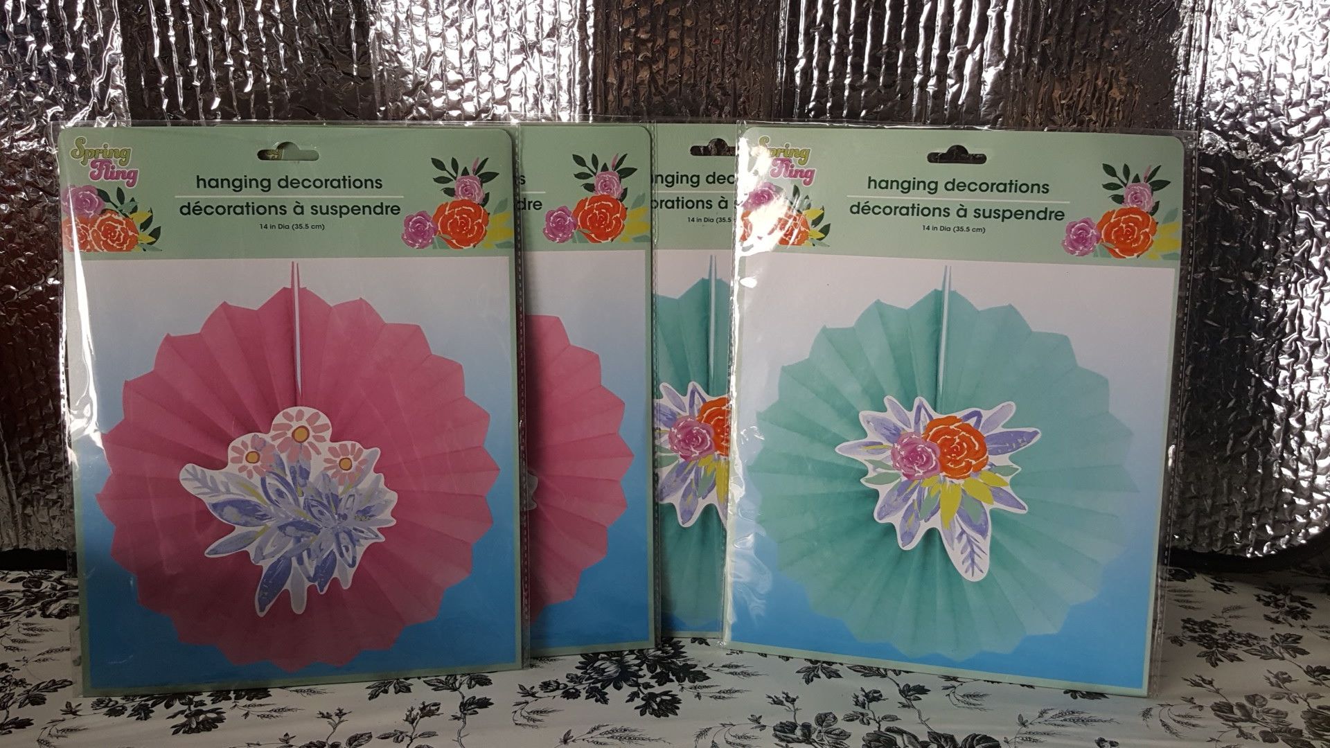 Brand new hanging decorations 2 colors to choose from pink or blue. Each item is $1.50 or all four for $5. Hanging decoration is 14 in diameter. Item is located in the city of Bellflower. Pickup location is in the Arco gas station on the corner of Alondra and Woodruff.