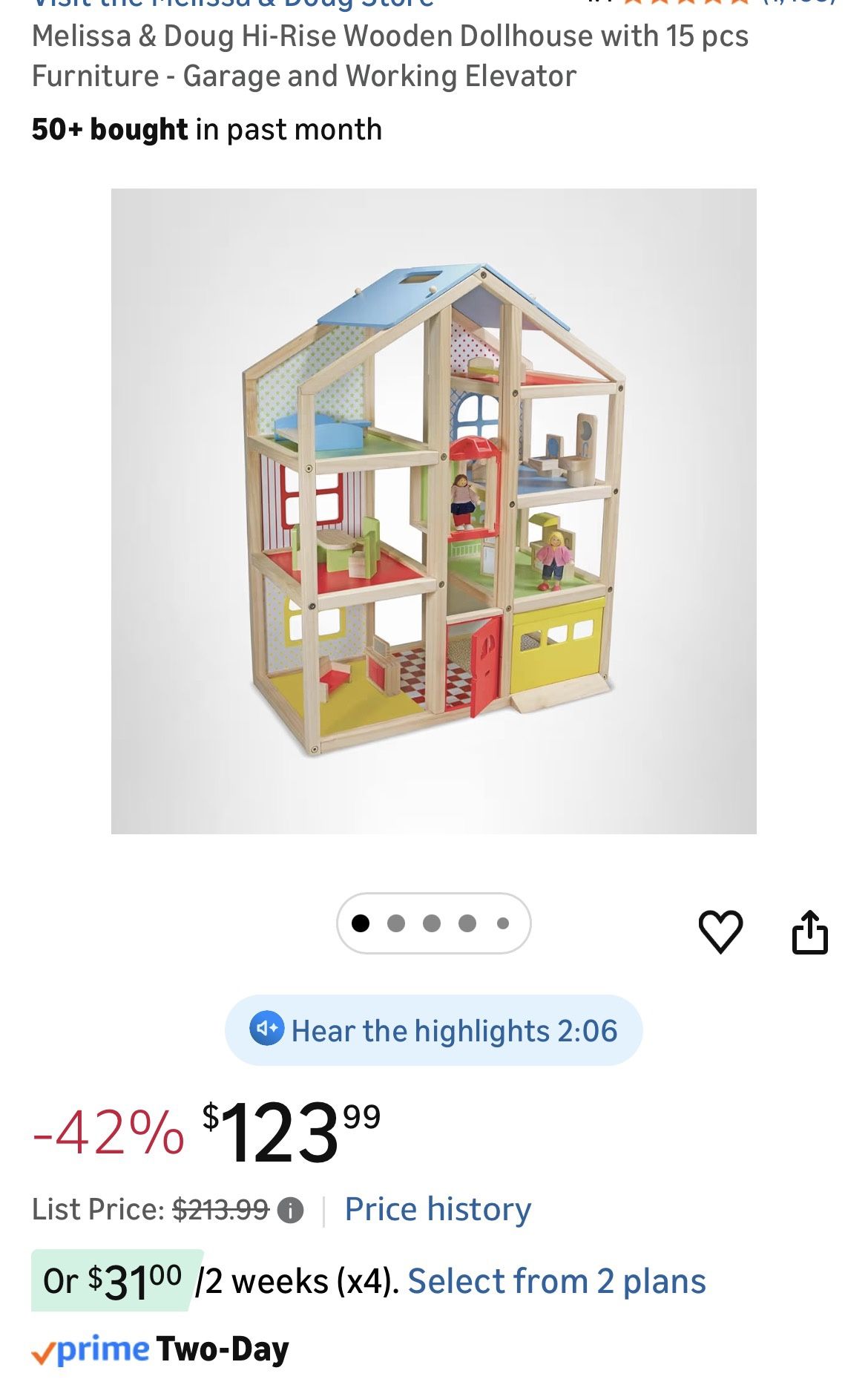 Wooden Dollhouse with Elevator, Furniture and Dolls