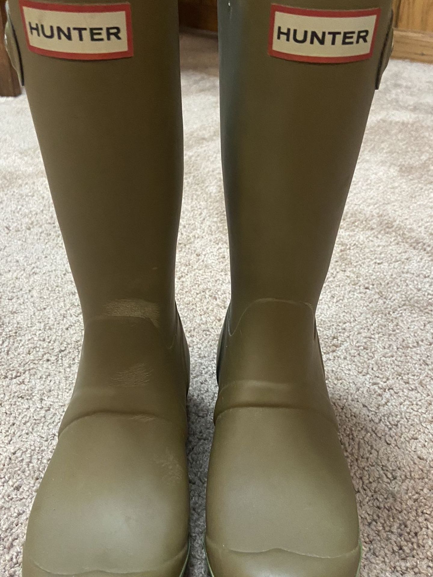 Hunter boots size $40 Quilted Black Chuck Taylors $30 Blue sparkle GAP slide ons $15 Black and Tan boots - $15
