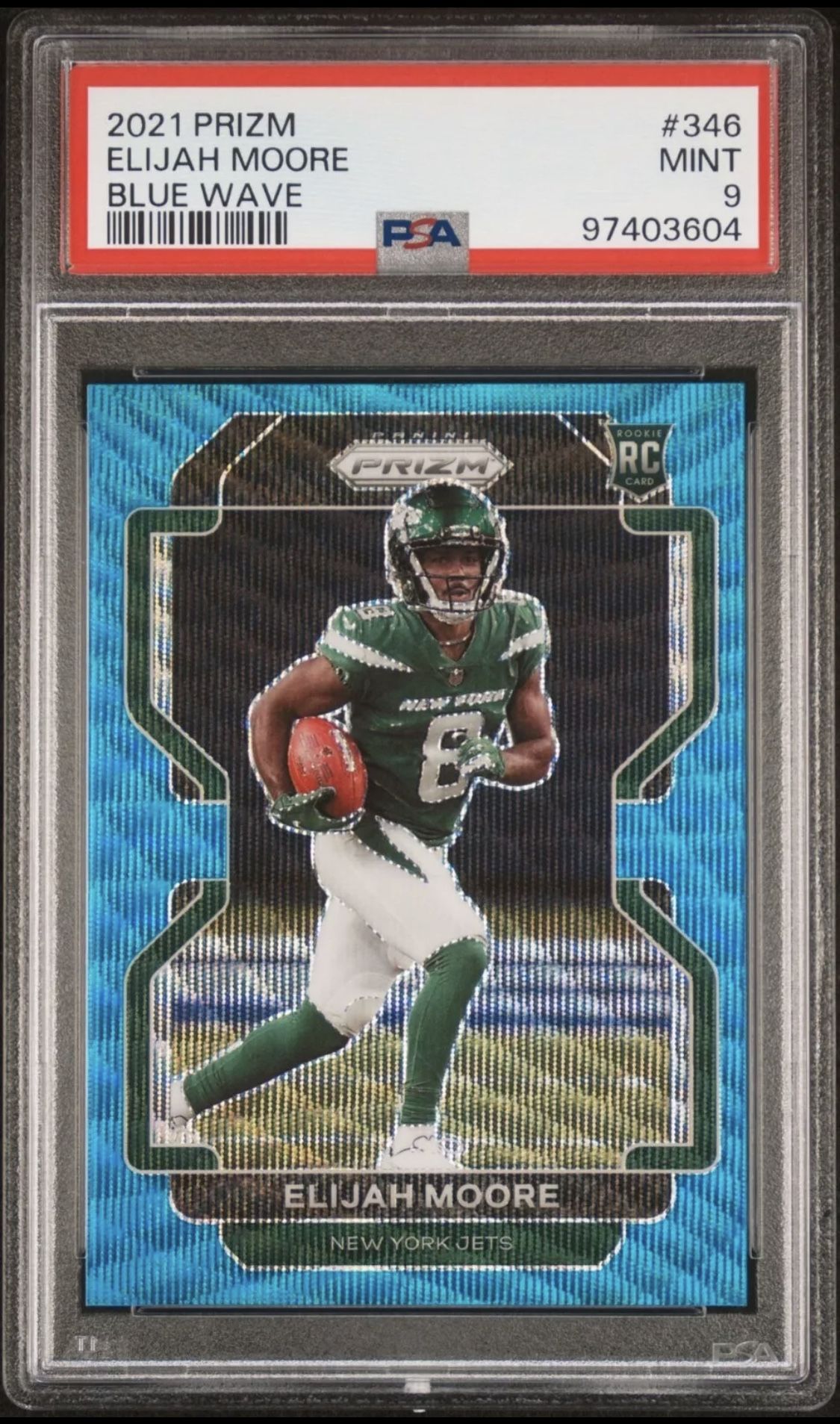 2021 Prizm #346 Elijah Moore MINT Blue Wave 183/199 PSA 9 RC