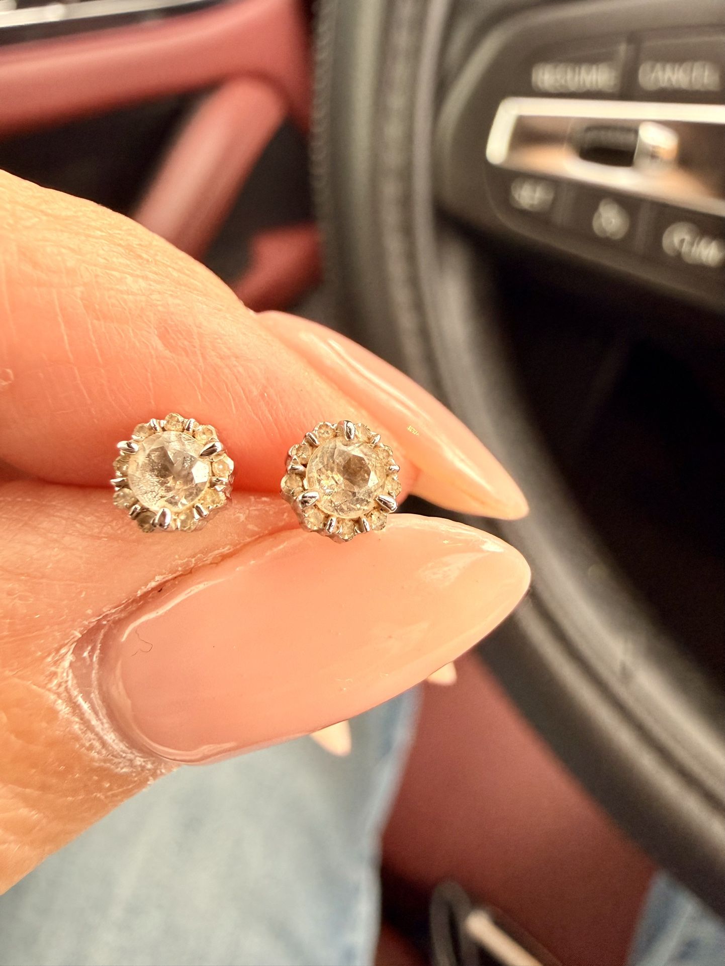 100% 14k white gold and real diamonds. Bring your tester if you have one. I bought them at Zales for $600. Asking $400 OBO.