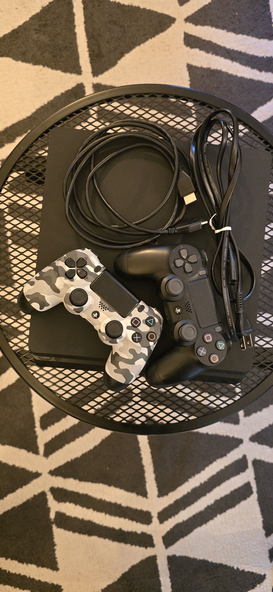 Sony Playstation 4, two controllers (one camouflage), power cord, HDMI cable, and a selection of 13 PS4 games. Great gaming bundle! I DONT SELL ONLY THE CONTROLLERS!!