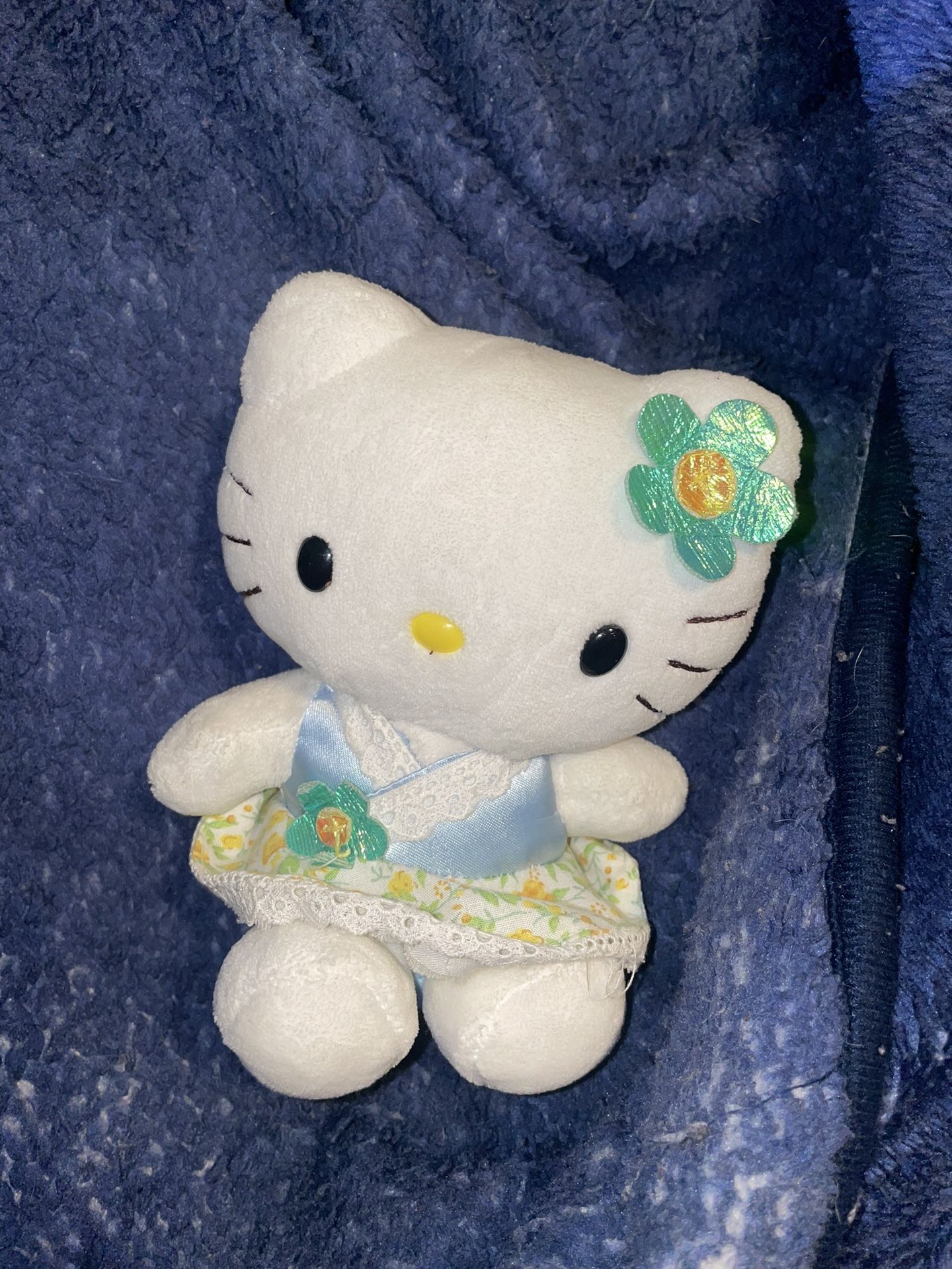 Adorable Hello Kitty wearing a dress plush #kawaii. Flower dress with a green flower bow. Around the size of a TY plush for reference. Her tush tag is faded. But she’s a more vintage plush