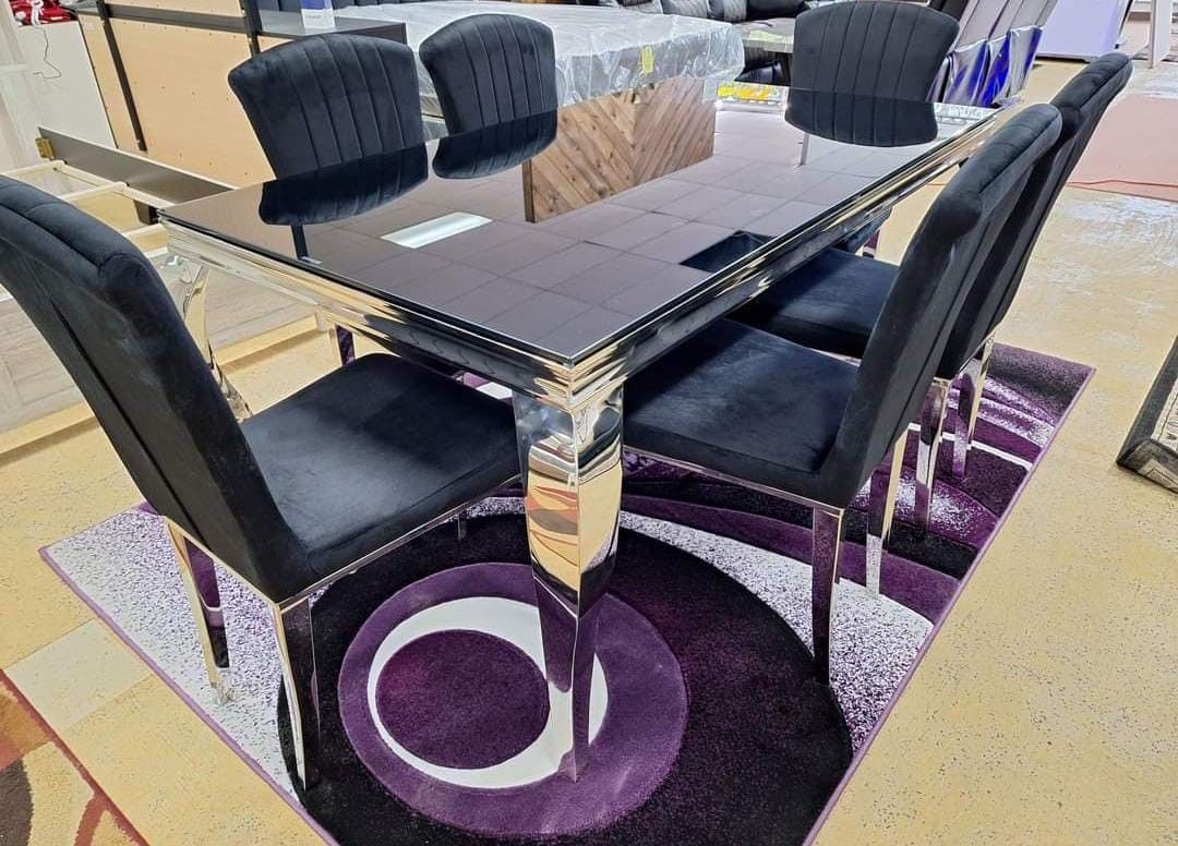 Carone Rectangular Glass Top Dining Table Black And Chrome and 6 Chairs