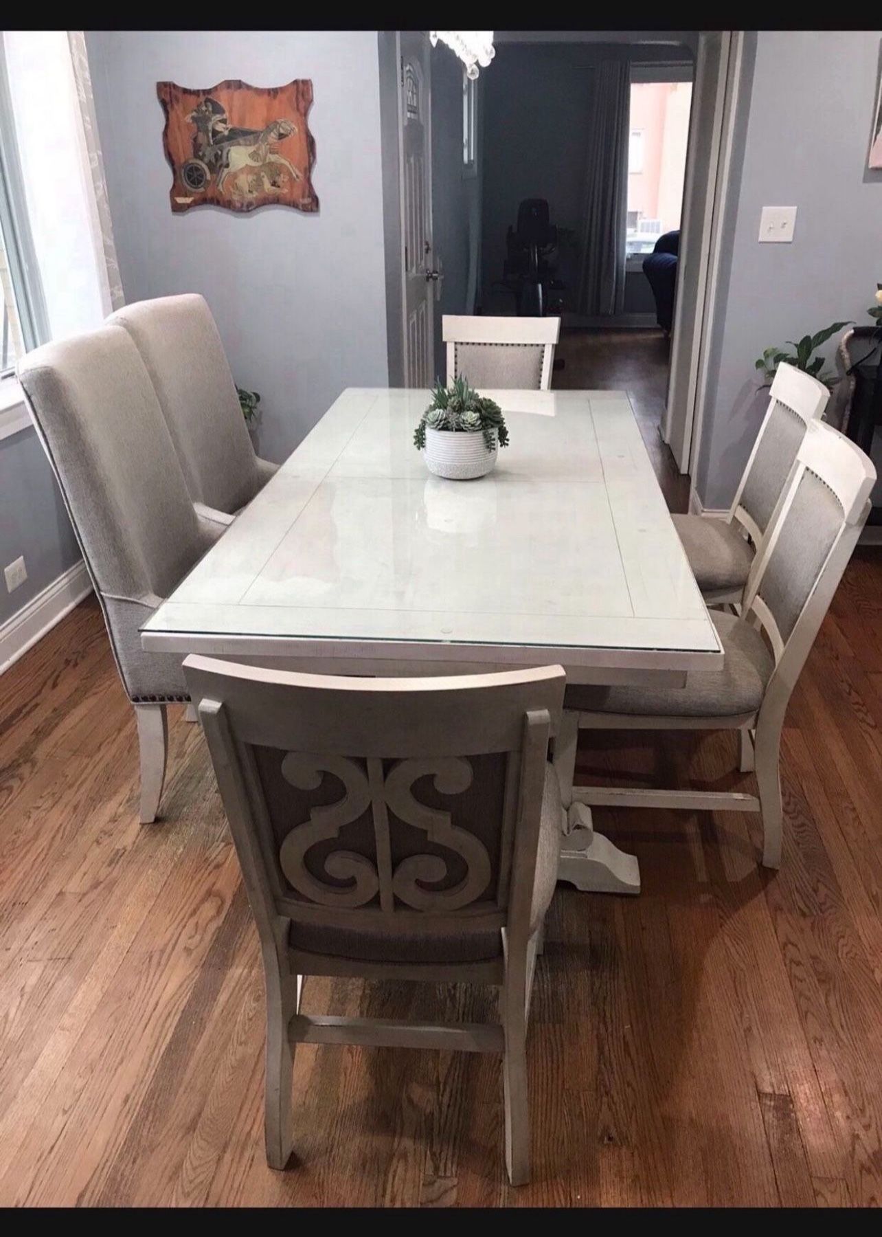 Dining table for six chairs. Custom-made glass and top 79 x 40 x 30 1/2.