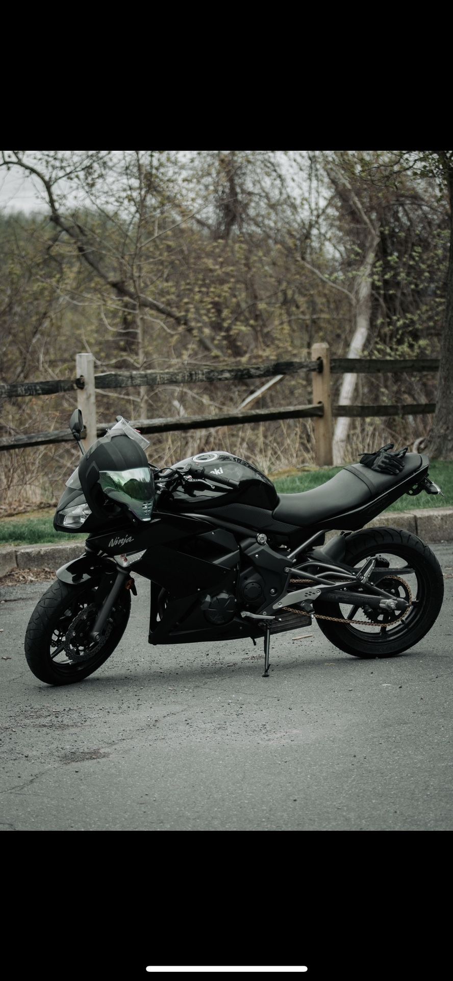 Great starter bike for those looking to start riding without too much power, but just enough to have fun! I have replaced the spark plugs, chain, several hoses and the battery so the bike runs great! The aftermarket parts I installed were frame sliders, fender eliminator, and clutch/brake handles. The bike has slight damage on the righthand side fender and scratches on the gas tank from the previous owner. Not firm on the price so would definitely be open to negotiate. No trades please. Shoot me a text and I can show you the bike! Also including a medium leather jacket, gloves, and possibly an icon airflite helmet with cardo Bluetooth headset.