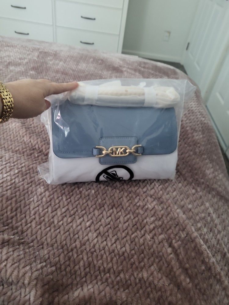 Medium size blue and baige color, gold hardware. Perfect Christmas gift. Pick up in Modesto