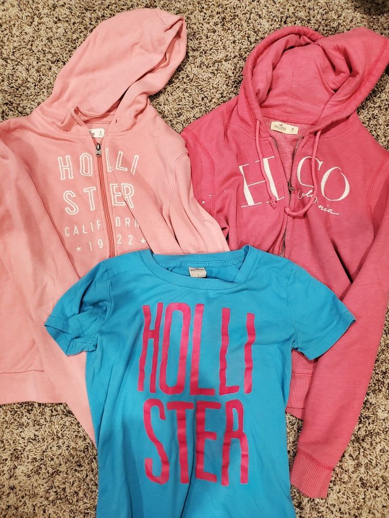 Light pink jacket is size small Dark pink jacket is size medium Blue teeshirt is size small $25 for all