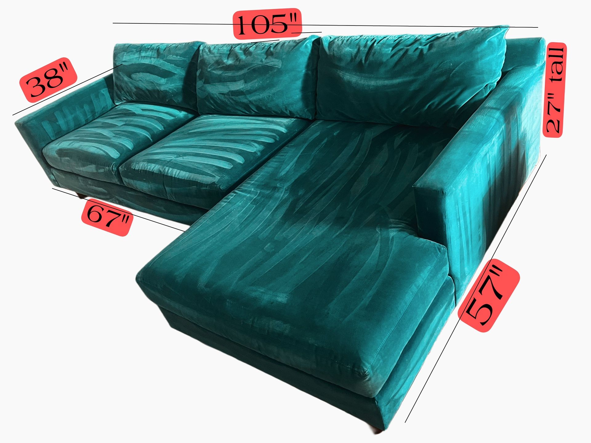 Dimensions are depicted in photograph. Separates into two pieces. Covers are washable. Customized and over $4k new. Pics don’t do it justice. Must pick up in Ahwatukee (Ray and 48th area) but can help load.