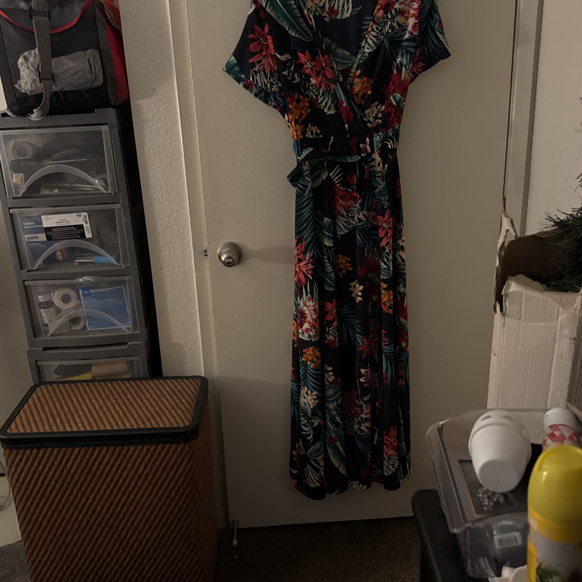 First dress she large 40/42 second dress sheen curve OXL shorter dress both Hawaiian like flowers really nice brand new asking for best offer $40