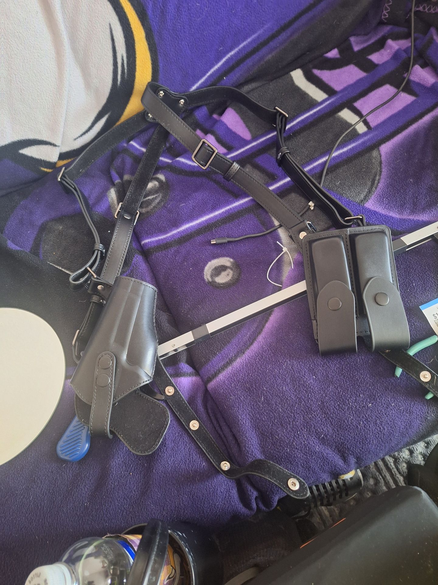 Brand new leather shoulder. strap for a gun and extra ammo cases on the strap.