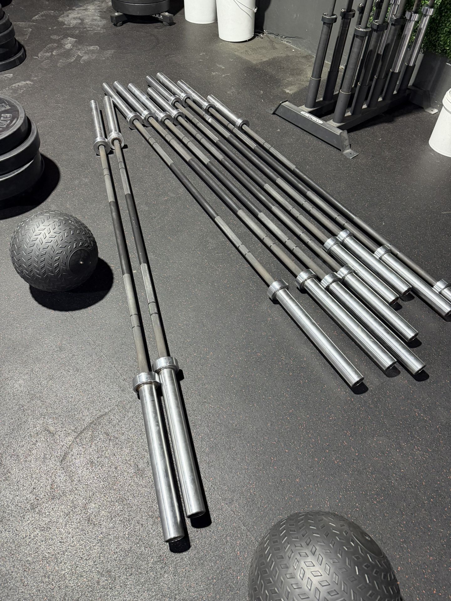 American Barbell brand… Lots of 45lb and 35lb barbells. Multiple weight rubber bumber plates (45, 35, 25, 15, 10). I have a lot so come get as much as you want for your home gym