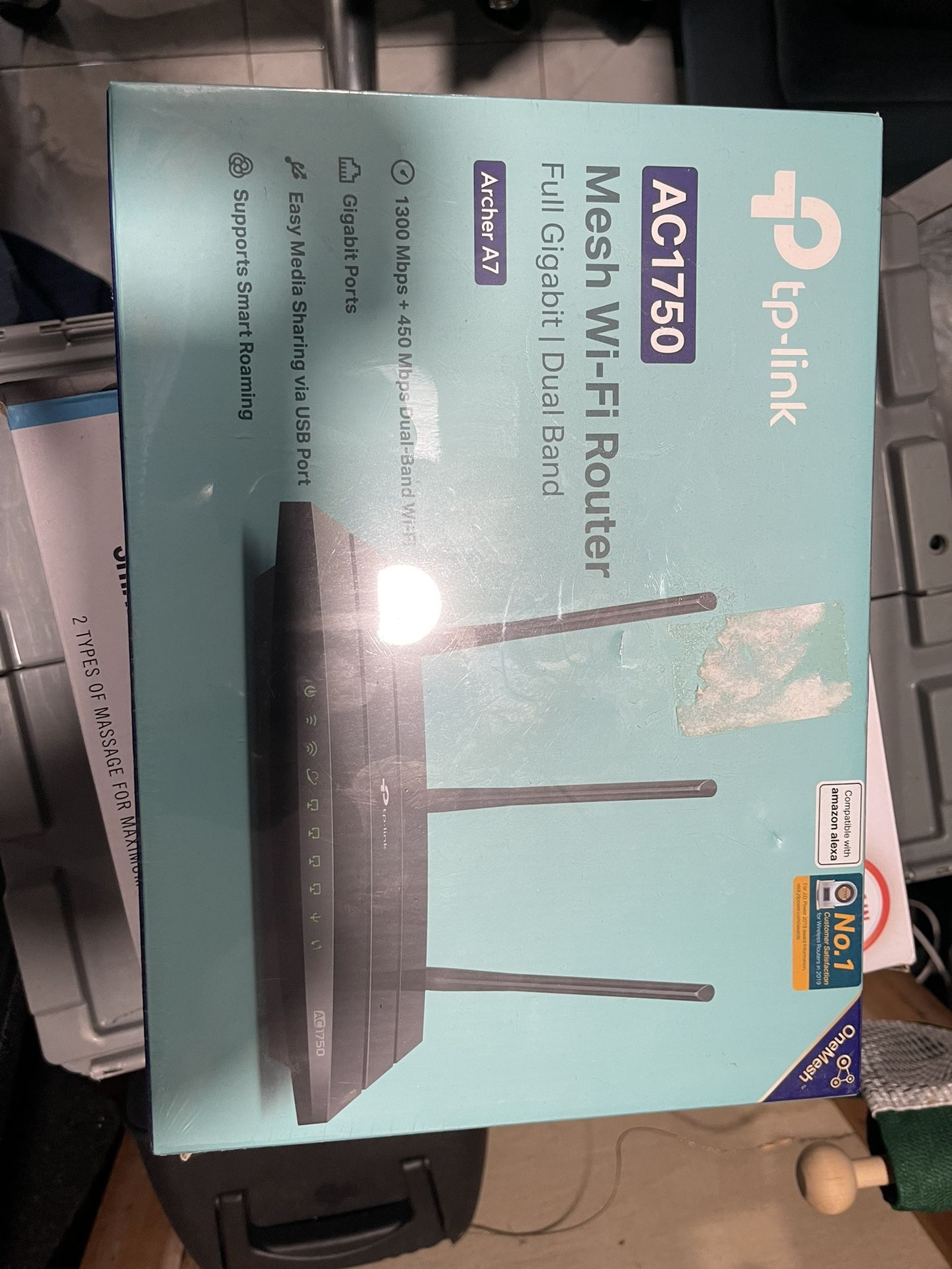 TP-Link AC1750 Archer C7 Wireless Dual Band Gigabit WiFi Router - OPEN BOX This router is pretty much brand new in the box. It is open box, but the unit seems to have never been taken out of the box or used, as the contents seems to be complete and the unit is in the original plastic. Will be shipped via USPS Priority Mail Medium Flat Rate Box. Any questions or concerns, please feel free to ask me