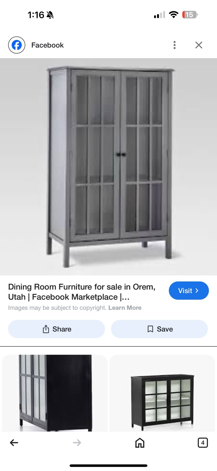 Threshold Windham Tall Cabinet from Target. I have 2 matching available. Good condition. Additional deal for purchasing both. Each have 3 shelves 1 for $75, 2 for $125. Height- 4'5" Width- 2'10" Depth- 14"