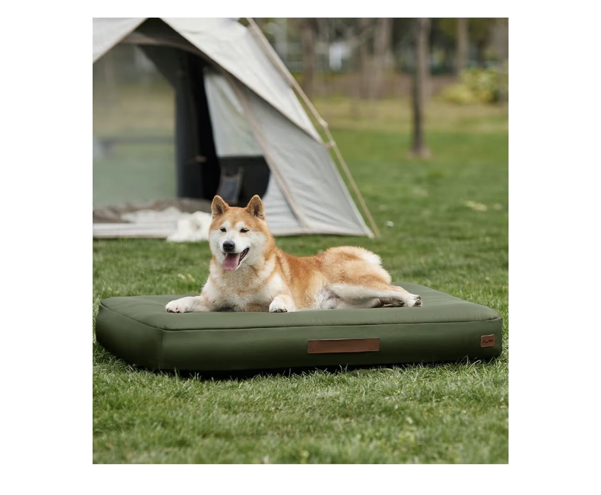 Waterproof, outdoor, self-inflating pet travel bed for small to medium pets
