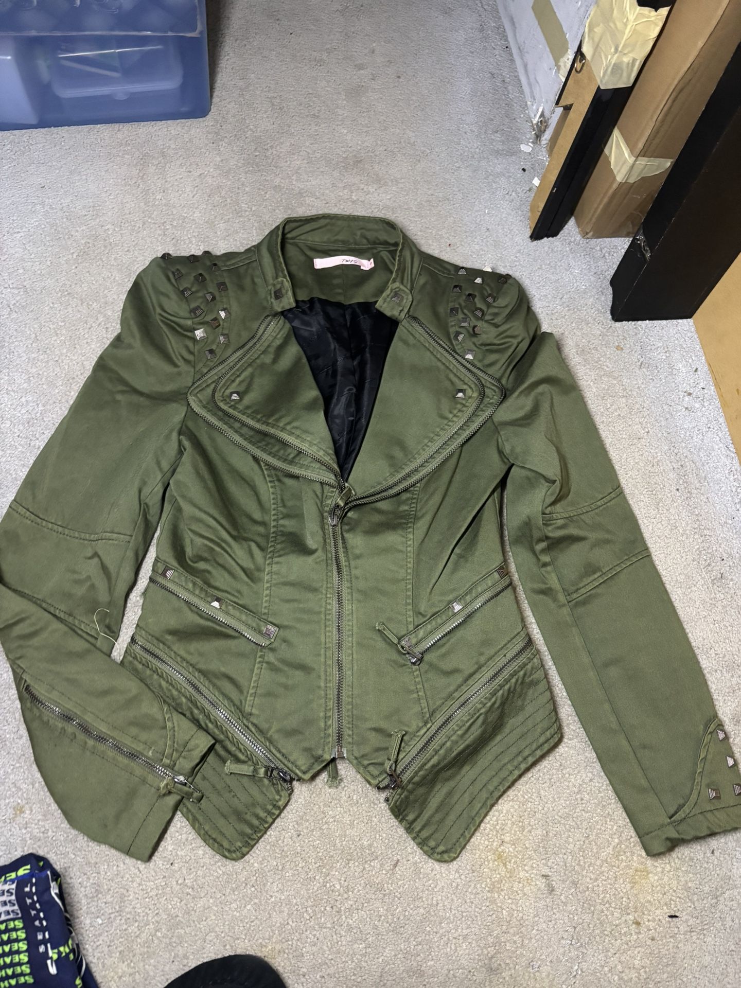 Army Green Woman’s Small Moto Fashion Jacket w/Shoulder Pads & Zipper Detailing*NWOT!*