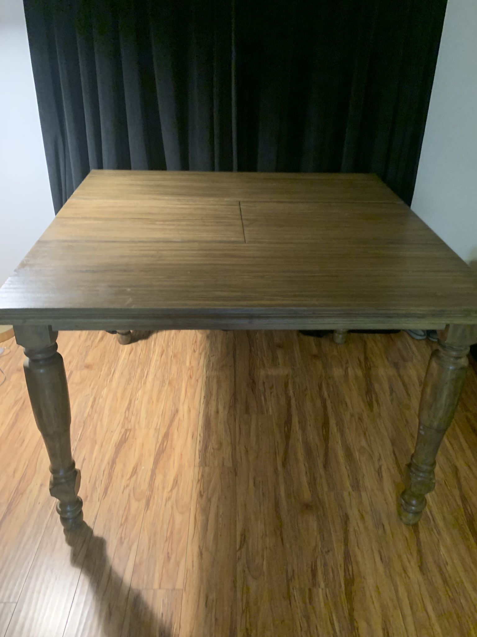 Wood dining table with extension 54”W x H 36” x 36” D With extension 54”W x H 36” x 54” D Middle part 18” From Ashley furniture Serial # (contact info removed)06