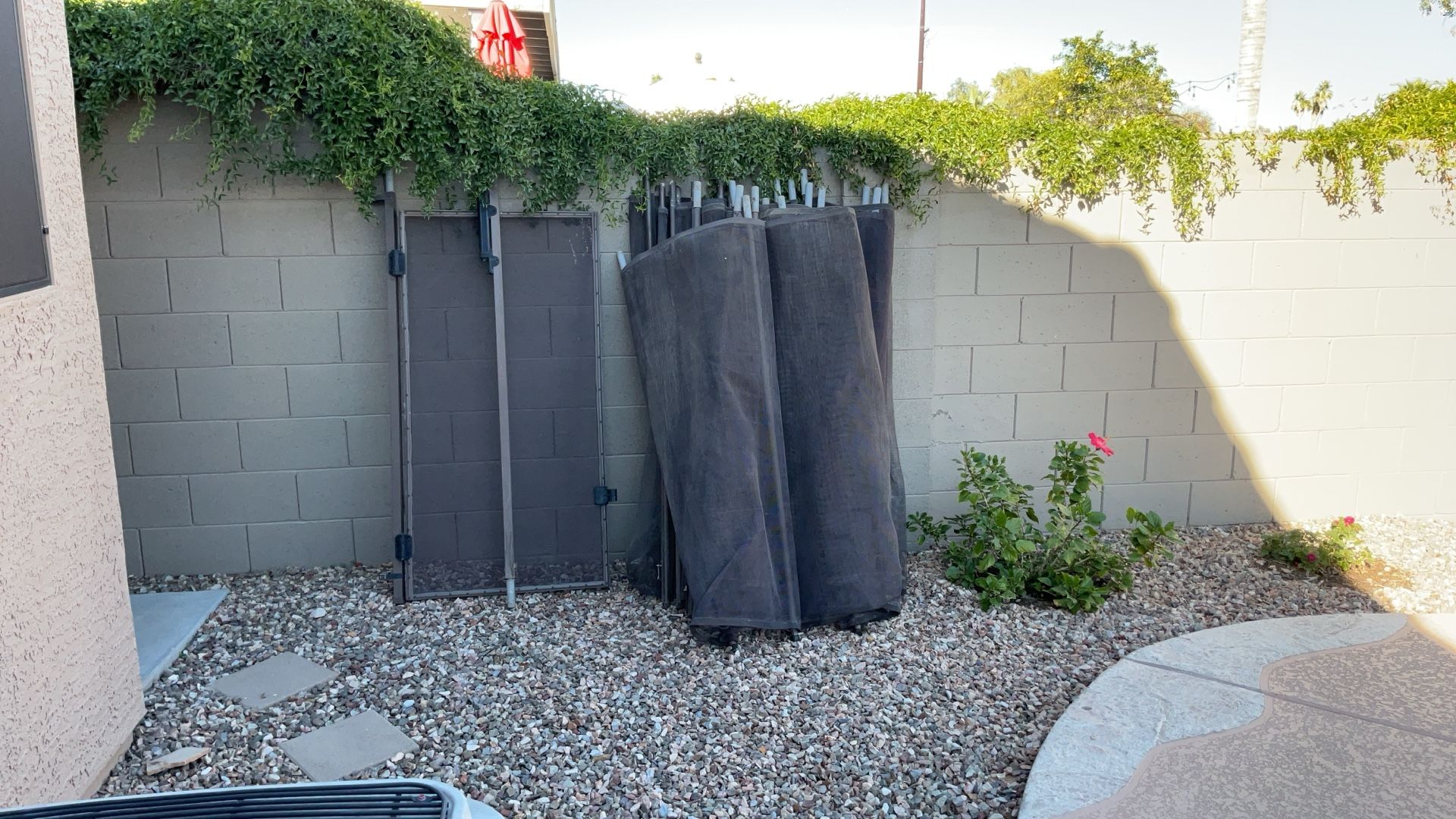 FREE! Pool fence for small pool. Wooden posts go into holes drilled around pool. Has metal gate. Wooden posts with plastic netting. Don’t know how long it is, but holes are in an oval shape around pool.