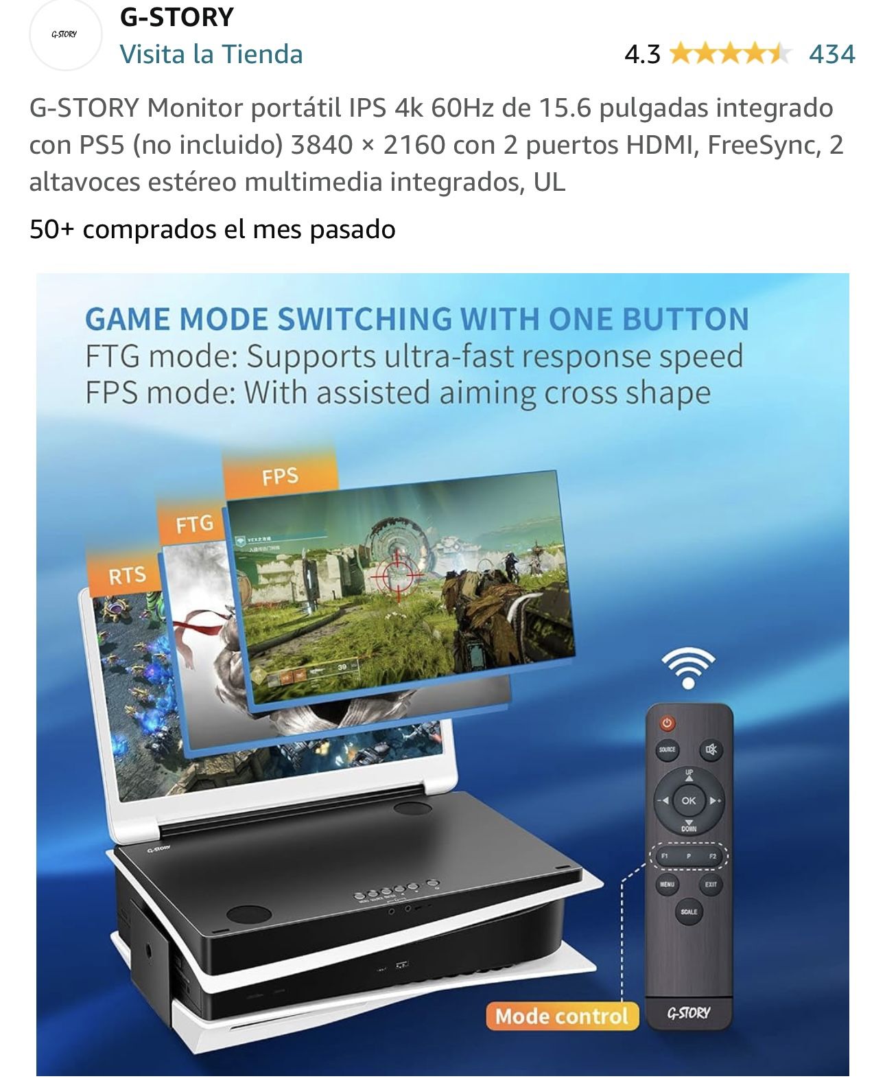 G-STORY Monitor portátil IPS 4k 60Hz de 15.6 pulgadas integrado con PS5 (