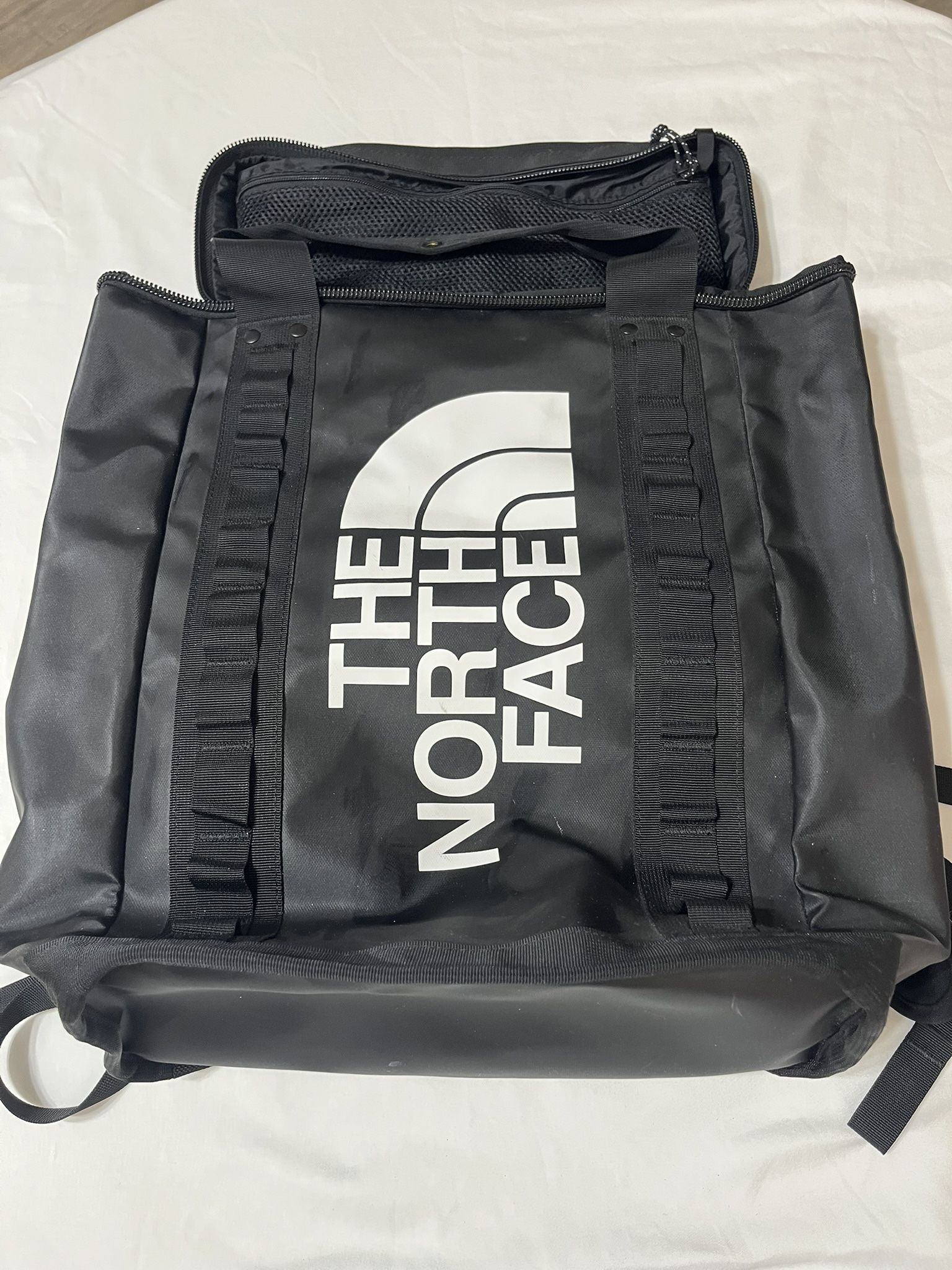 Pre-owned The North Face Base Camp tote/backpack in black with large logo branding. Details: • Durable coated fabric construction • Large main compartment with zip closure • Carry handles + backpack straps • Interior mesh pocket • Lightweight and rugged design Condition: • Used – good condition • Normal wear from use • No major rips or tears • Zippers function properly Includes: Bag only Authenticity: Interior tag present. Sold as shown. ⸻ Inventory ID: 724-28