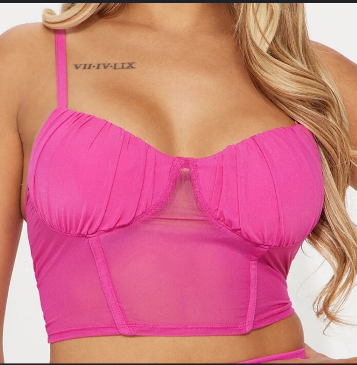 Fashion Q Bright Pink Transparent Corset Crop Top - Size L